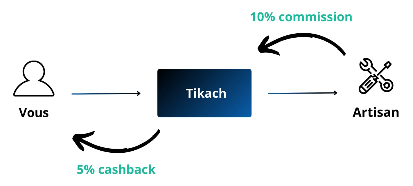 En passant par nous, l'artisan nous verse une commission qui sera partagé avec vous. C'est le CashBack.
